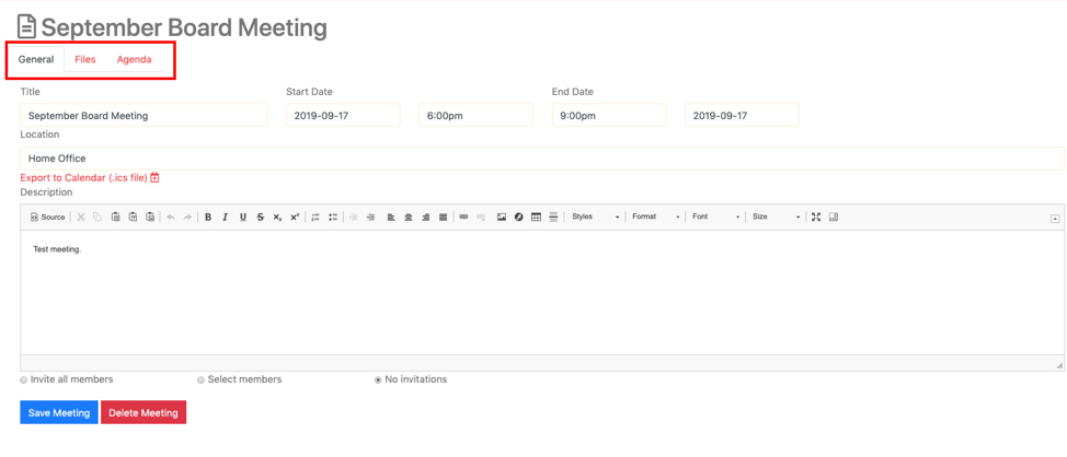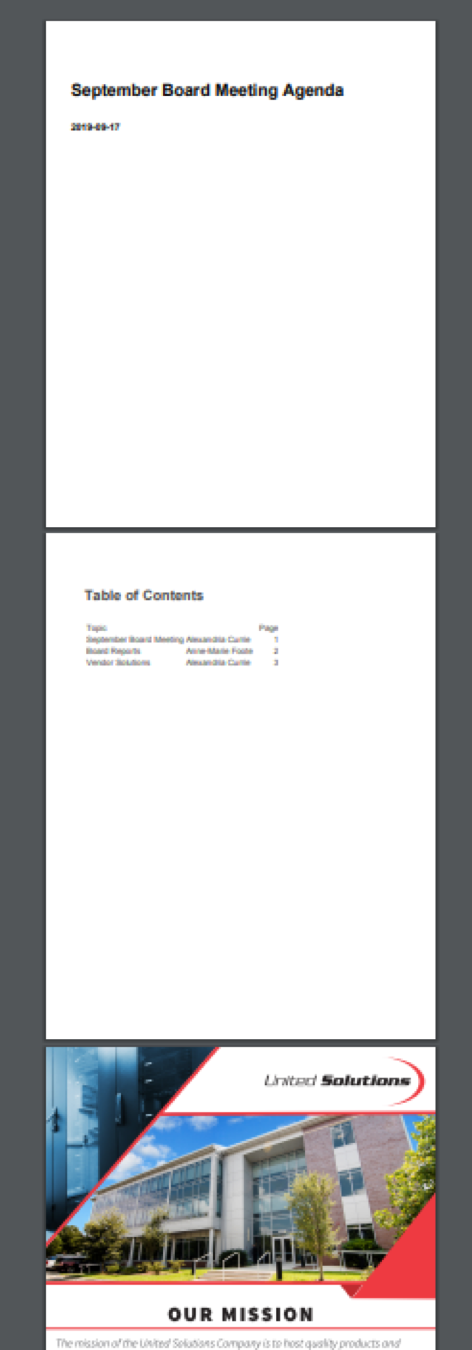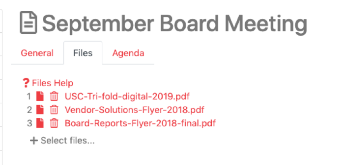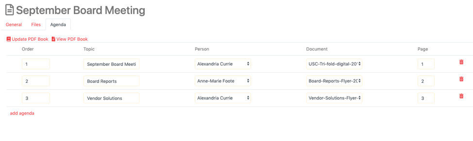 Just add all the PDF files needed for your Board meeting (or other meeting) then move over the Agenda tab.